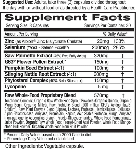 Prostate Support Supplement with Saw Palmetto, Lycopene, and Stinging Nettle - Vegan and Gluten-Free - 90 Vegetable Capsules