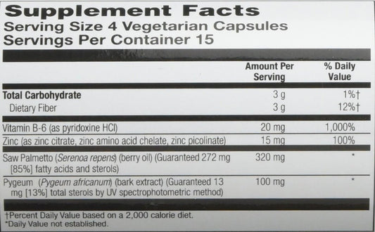 Prostate Support Supplement for Men - Saw Palmetto, Pygeum, Zinc - 100 Vegetarian Capsules
