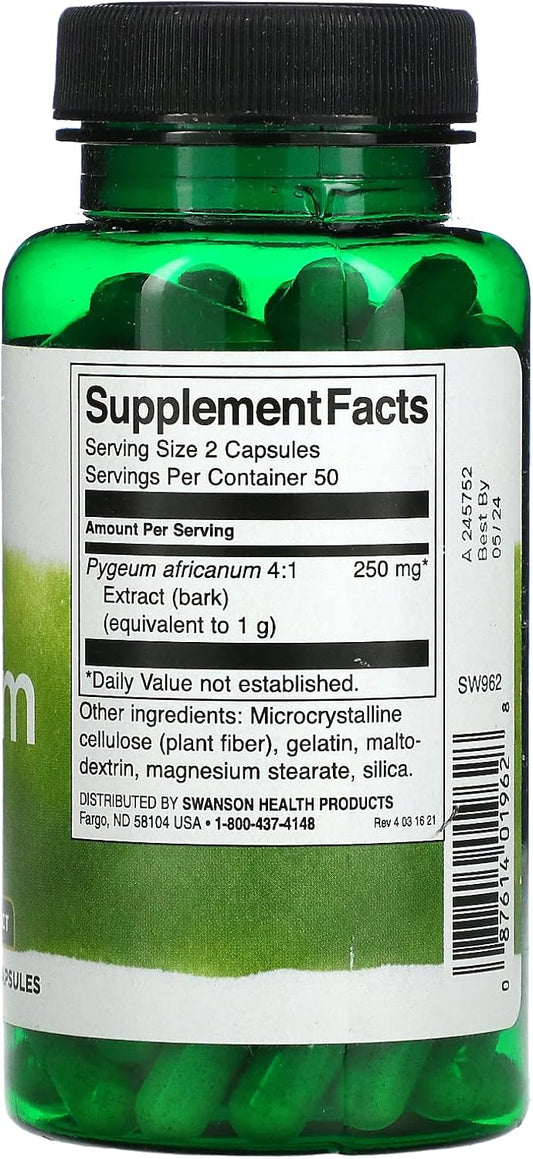 Swanson Premium Pygeum 500 mg Capsules - Pack of 100