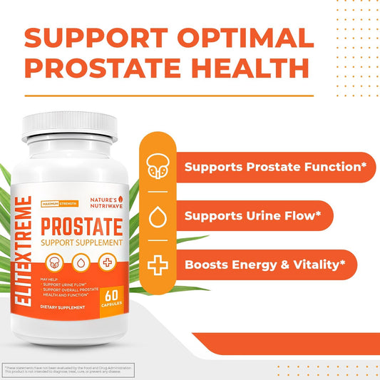 NutriWave ELITEXTREME PROSTATE Supplements for Men - Saw Palmetto Extract for Prostate & Urinary Health - Non-GMO, Made in USA - 60 Caps, 6 Month Supply