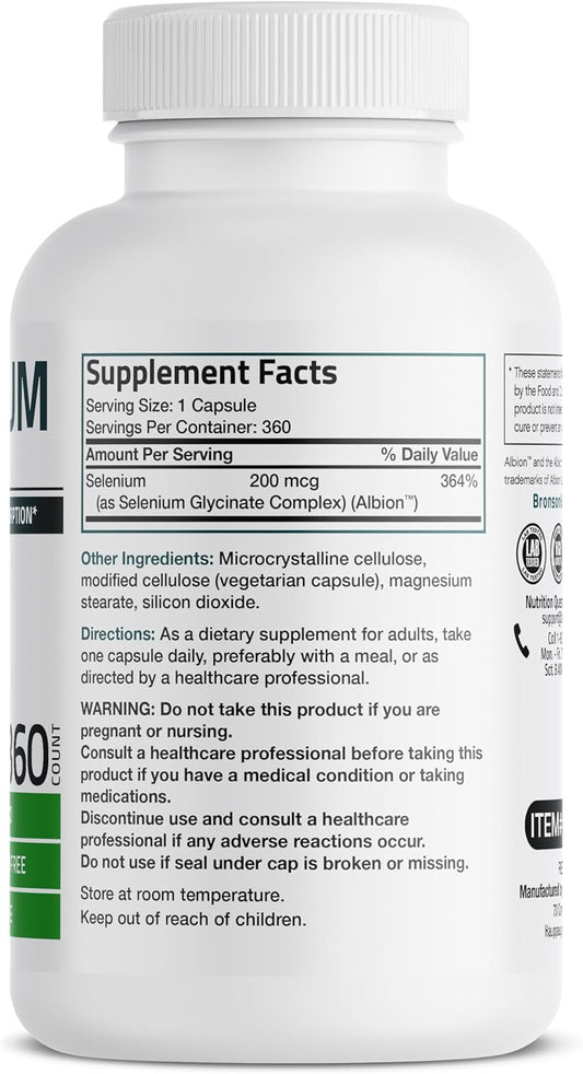 High Absorption Selenium Supplement - 200 mcg, Yeast-Free Chelated Amino Acid Complex - Essential Trace Mineral, 360 Veg Capsules