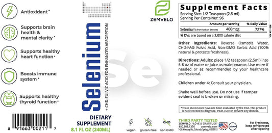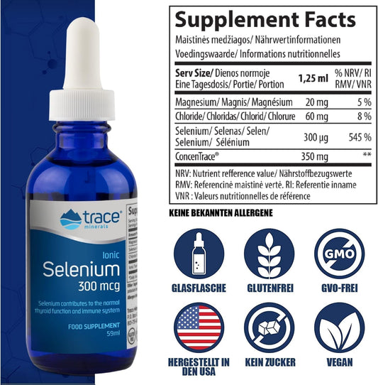 Liquid Ionic Selenium Dietary Supplement - 300 mcg - Antioxidant, Immune & Thyroid Support - Vegan, Gluten Free - 2 fl oz - 48 Servings