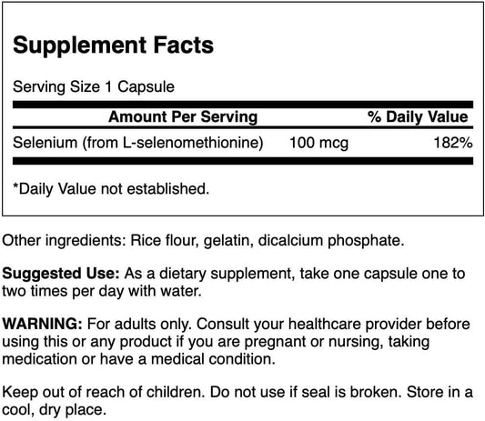 Swanson Selenium Capsules - L-Selenomethionine Supplement for Heart, Prostate, Immune & Thyroid Health - 300 Capsules, 100mcg