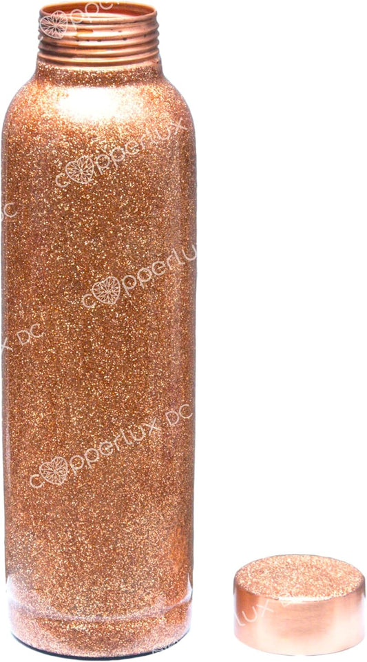 Handcrafted Copper Water Bottle with Glitter Paint Design - Leak-proof, 32oz for Home, Sports, Yoga, Office - Ideal Gift