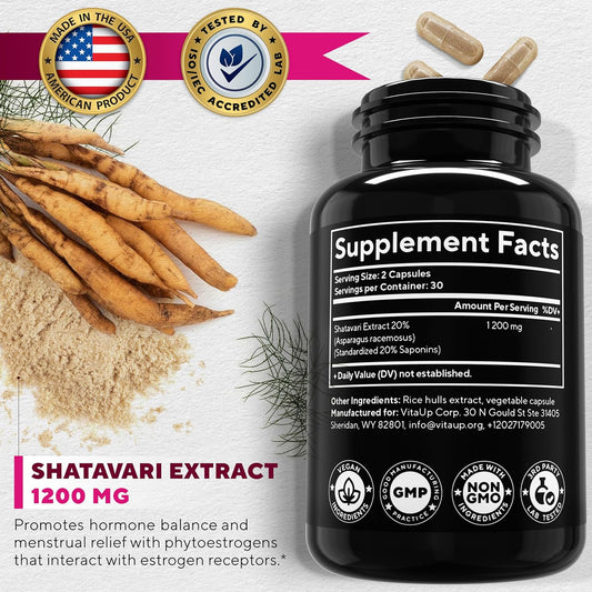 USA Made Shatavari Root Supplement Capsules - 1200mg Shatavari Extract for Women - Hormone Balance, Menopause, Menstrual Relief - 60 Capsules