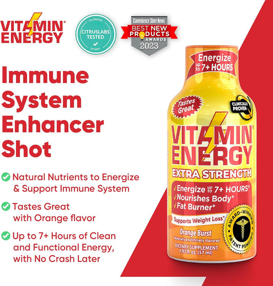 Natural Vitamin Energy Shots for Immune Support | Sugar-Free | Orange Burst Flavor | 7+ Hours of Energy | Pack of 4 - 1.93 fl oz