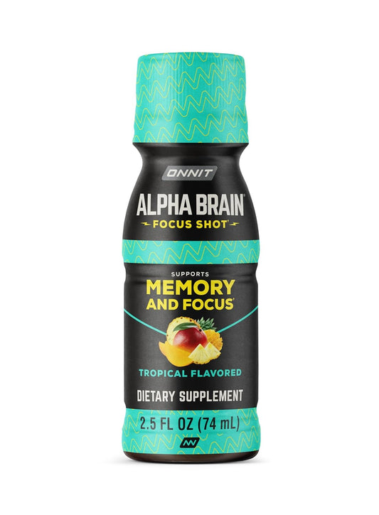 Onnit Alpha BRAIN Tropical Energy Shot Supplement - Boost Energy, Focus, Mood, and Brain Function - 2.5 fl oz, 6 pack