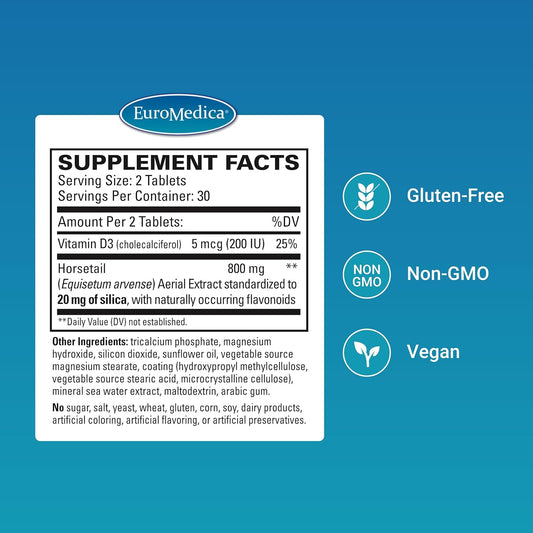 EuroMedica Silica Tablets for Bone Density, Hair, Skin, and Nails - 60 Count