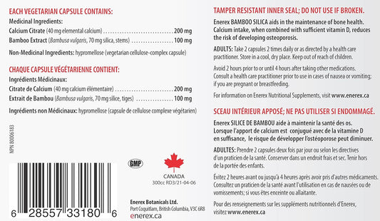 Plant-Based Bamboo Silica & Calcium Citrate Capsules for Bone Health - 180 Veggie Capsules for Stronger Hair, Skin & Nails - Organic Silica Supplement for Overall Wellbeing