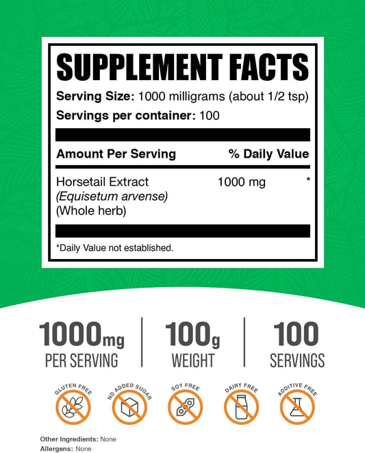 BulkSupplements.com Horsetail Extract Powder - Silica Supplement from Horsetail Herb - Gluten Free, 100g (3.5 oz) - Pack of 1
