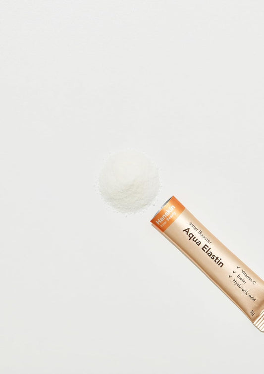 30 Individual Sticks of Hanskin Aqua Elastin Hyaluronic Acid Powder Packets with Biotin & Vitamin C for Skin, Hair, Nails & Joints