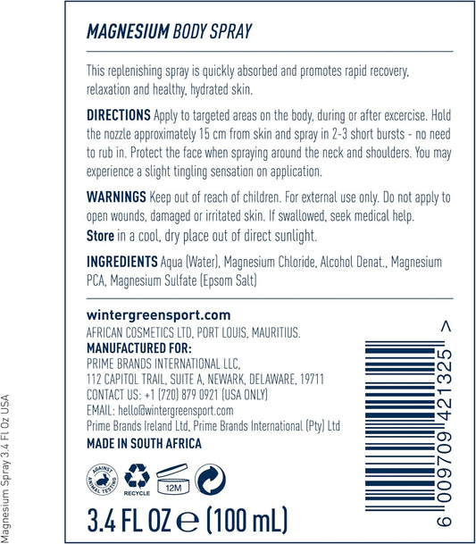 100% Pure Wintergreen Magnesium Spray - 3.4 Fl Oz (100 ml) Bottle
