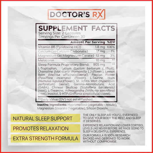 EPN Supplements Doctor's RX Ultra Strength Sleep Aid with 18 Ingredients - 60 Capsules