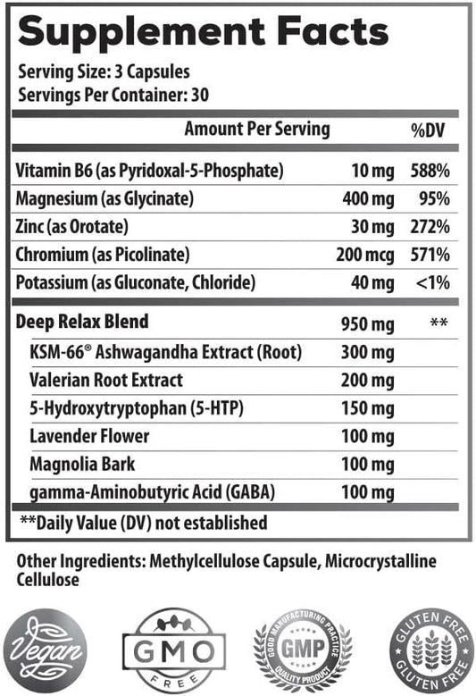 Cortisol Manager Supplement for Deep Sleep & Relaxation - 90 Vegan Capsules with Ashwagandha, L-Theanine, Rhodiola Rosea Extract & Apigenin