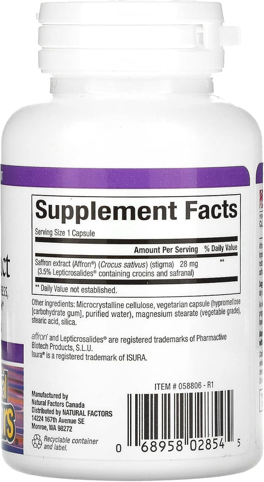 Organic Stress-Relief: Affron Saffron Extract Capsules - 30 Count