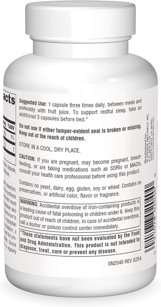Source Naturals L-Tryptophan Capsules - 500mg, Supports Mood, Relaxation, and Sleep - 90 Count