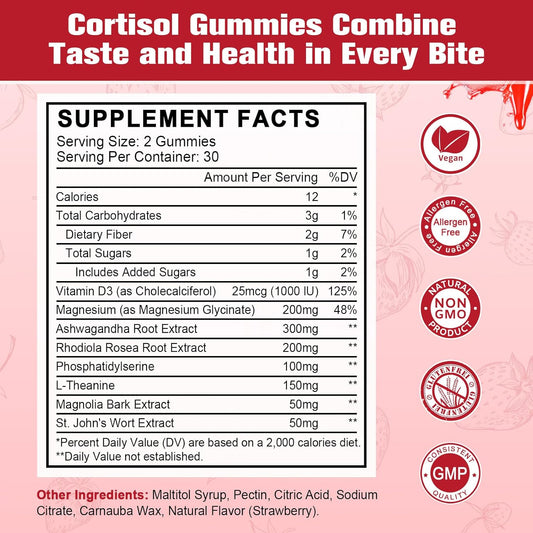 JIANKYTZ (2 Pack) Cortisol Gummies for Women with Rhodiola Rosea & Ashwagandha - Non-GMO, Balanced Cortisol & Zzz Support - 120 Gummies