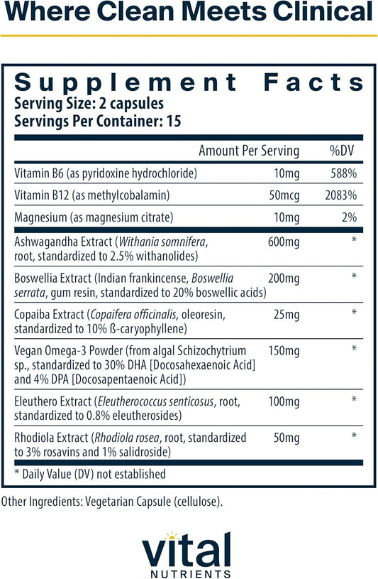 Vegan Cortisol Manager Supplement for Stress Relief & Energy with Ashwagandha & Magnesium - 90 Capsules