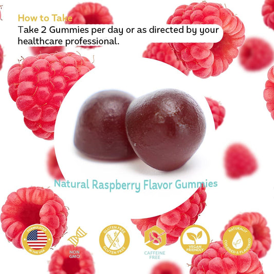 5-in-1 Stress Relief Gummy Supplement with GABA, Lemon Balm, L-Theanine, Chamomile, and Ashwagandha - Natural Raspberry Flavor - 60 Gummies