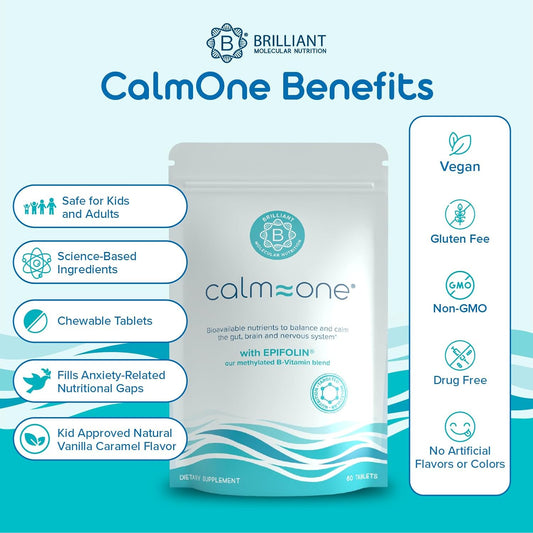 Natural CalmOne Chewable Tablets for Adults & Children - Support Gut, Brain & Nervous System Balance - Fast Relief for Anxiety, Overwhelm, Sleep & Relaxation - 60 Tablets