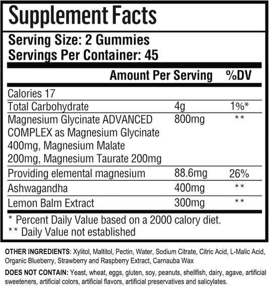 180 CT Calm Magnesium Gummies with Ashwagandha for Adults & Kids - Sugar Free Chews for Relaxation, Stress Relief, Sleep, Muscle & Cardio Support