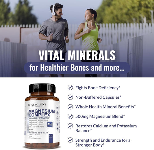 500mg Vitalitown Magnesium Complex Supplement with Chelated Glycinate, Malate, Taurate & Citrate - Vegan Non-GMO Capsules for Sleep, Muscle, Energy & Heart - 120 Count