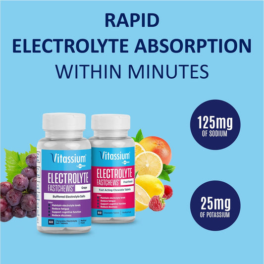 Grape Flavored Vitassium FastChews: 60 Chewable Electrolyte Tablets for POTS & High Sodium Diets