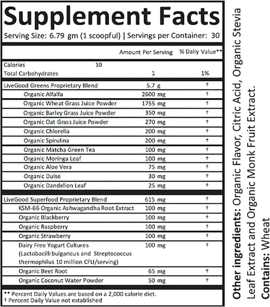 Organic Super Greens Blend with Wheat, Barley, Matcha Green Tea, Aloe Vera - Vegan & Gluten-Free - 7.2 oz