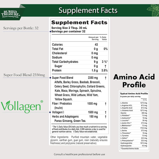 Green20 Fusion Liquid Greens Drink - 32 Servings, 16 Superfoods including Spirulina, Spinach, Moringa - Supports Energy, Immunity, & Digestive Health - Vegan Collagen & Green Tea Blend