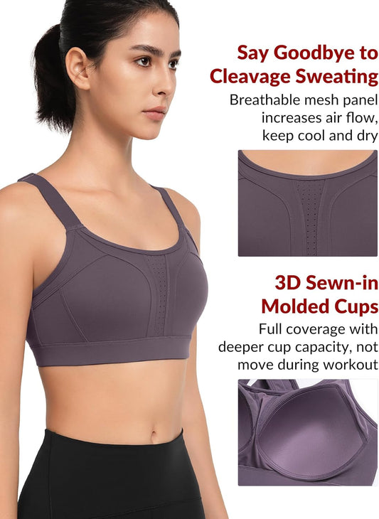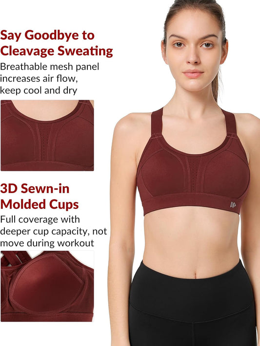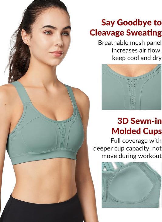 High Impact Yvette Sports Bra with Adjustable Criss Cross Back, Full Support for Large Busts - Say Goodbye to Bounce