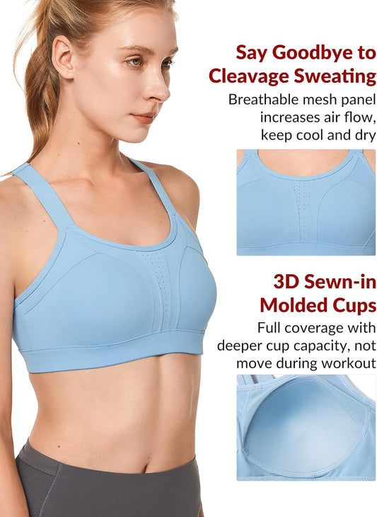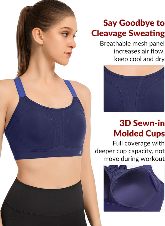 High Impact Yvette Sports Bra with Adjustable Criss Cross Back - Full Support and No Bounce for Large Busts