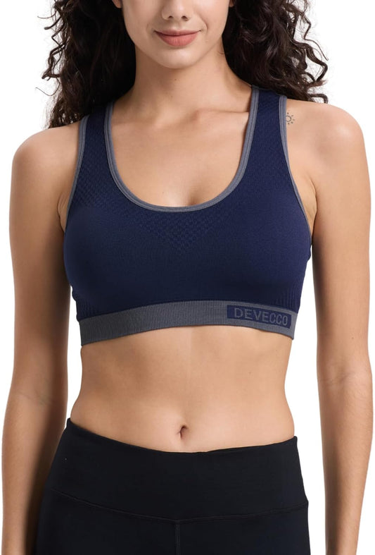 Multipack Medium Support Wireless Padded Racerback Sports Bras for Women with Full Coverage - Ideal for Workouts