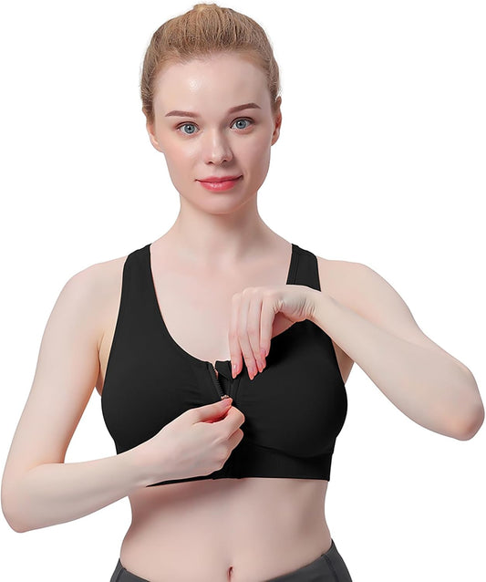 WANAYOU Women's Wireless Zip Front Post-Surgery Sports Bra for Active Yoga
