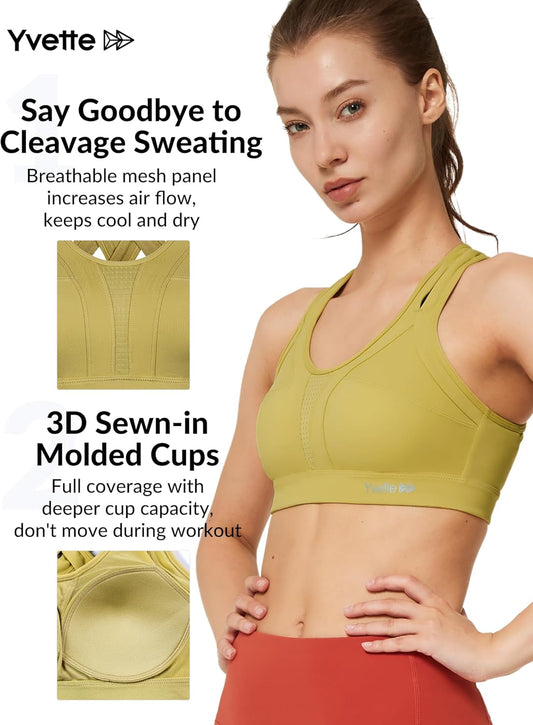 Yvette Women's High Impact Criss Cross Back Sports Bra for Plus Size Running