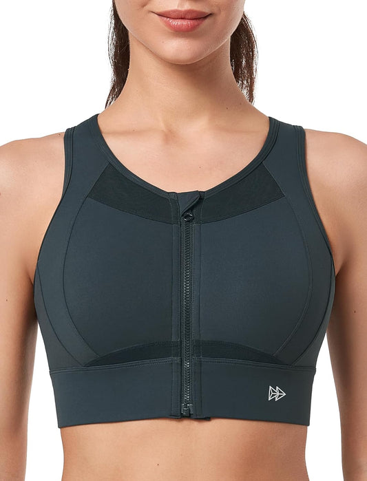 Yvette Zip Front High Impact Sports Bra for Women with Large Bust - Ideal for Running and Workouts, Offers High Support