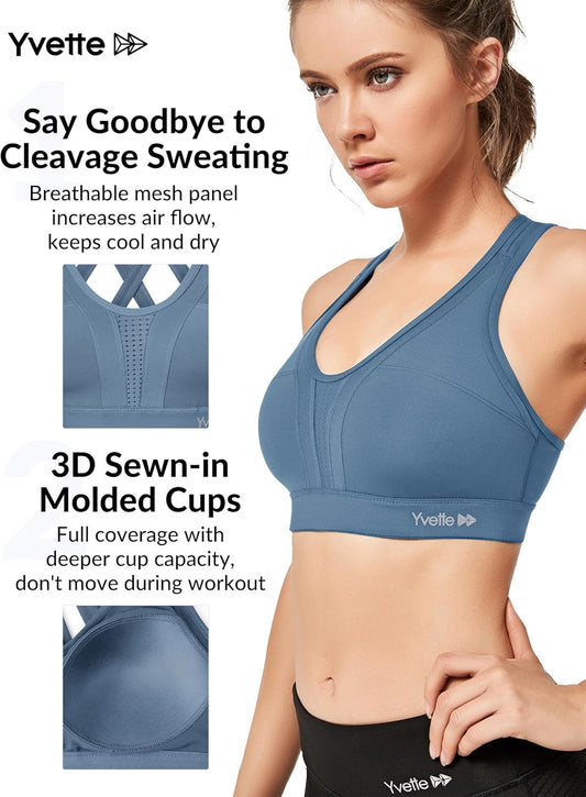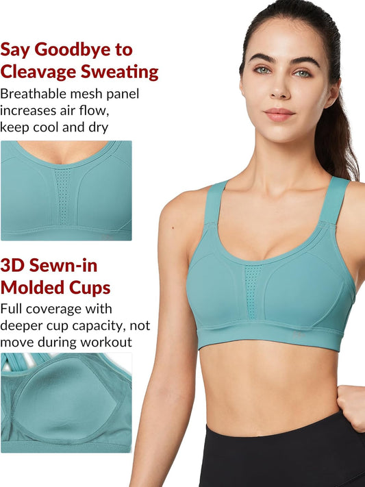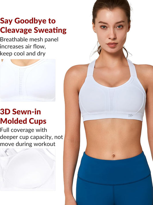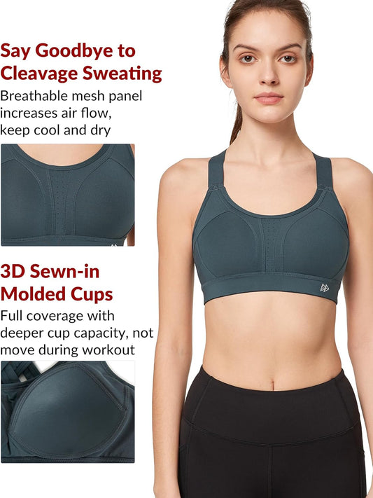 High Impact Yvette Sports Bra with Adjustable Criss Cross Back - Maximum Support for Large Bust, Zero Bounce