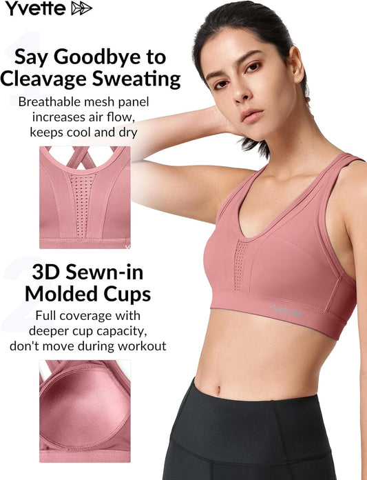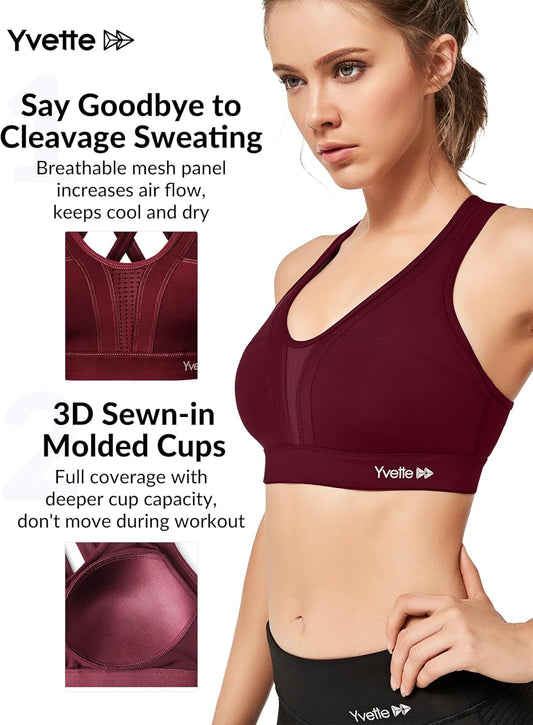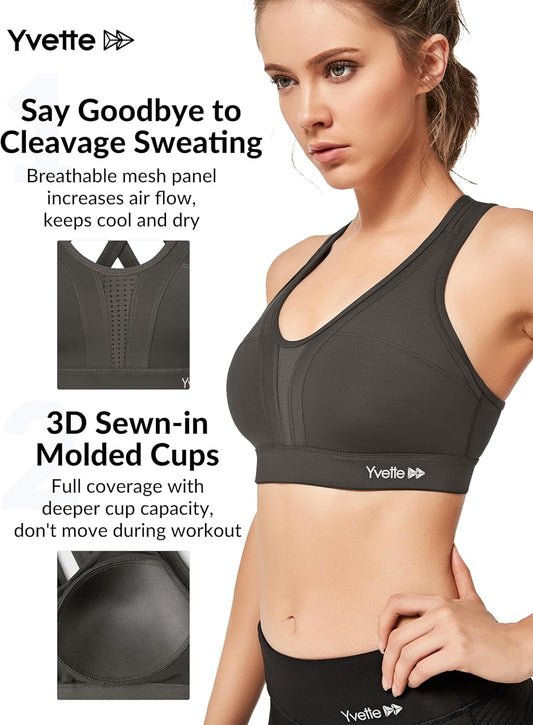Yvette Women's High Impact Sports Bra with Criss Cross Back for Plus Size Running