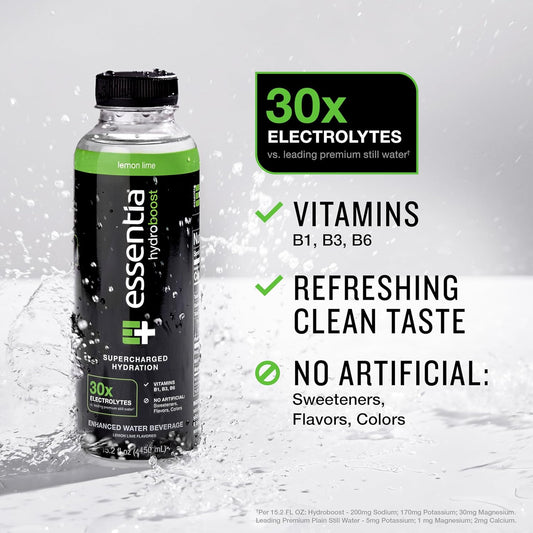 Essentia Hydroboost Enhanced Bottled Water, Lemon Lime Flavor, 15.2 fl. oz., 12 Pack - Supercharged Hydration with B-Complex Vitamins