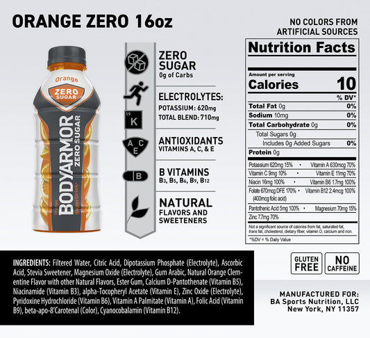BODYARMOR ZERO Sugar Orange Sports Drink - Sugar Free & Low-Calorie Hydration with Natural Flavors - Packed with Electrolytes, Antioxidants, and B-vitamins - 16 fl oz (Pack of 12)