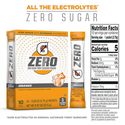 Gatorade G Zero Orange Powder Packets - 120 Count (0.10oz) Pack of 12