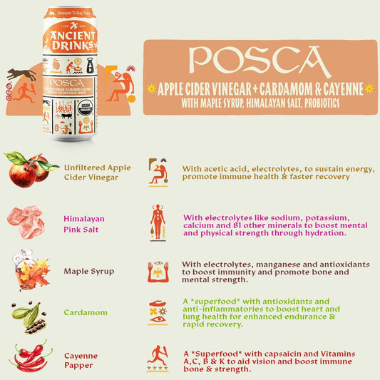 Organic Apple Cider Vinegar Beverage with Electrolytes, Vitamins, Probiotics - Mixed Pack of Super-Hydrating Sports Drinks - 16 fl oz (12 cans)