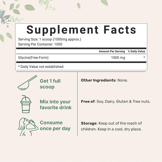 Micro Ingredients Glycine Powder 1KG - Supports Restful Sleep, Neurotransmitter, Water Soluble - Made in USA