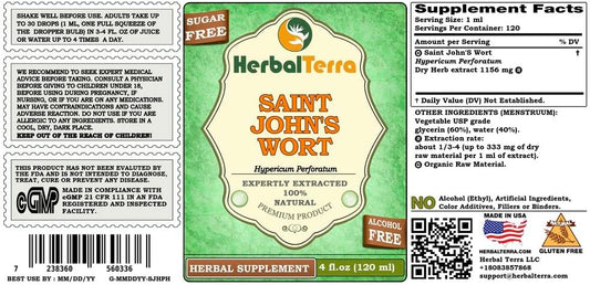 Organic Saint John's Wort Glycerite Liquid Extract by HerbalTerra - Alcohol-Free, Made in USA - 4 fl. oz