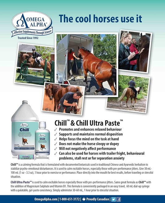 32 Ounces Omega Alpha Chill Calming Formula for Horses - Stress Relief Supplement