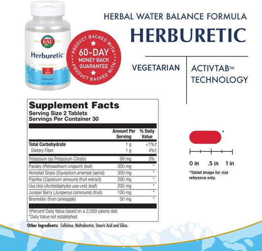 60 Count KAL Herburetic Tablets for Natural Diuretic Support