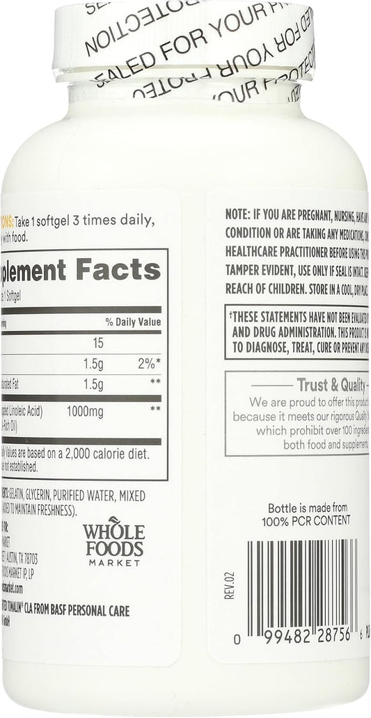 Whole Foods Market Tonalin CLA 1300mg Softgels - 90 Count Bottle for Daily Use