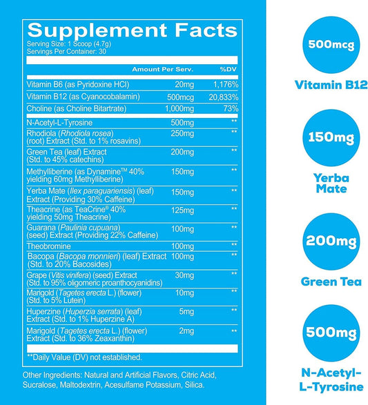 Fast-Acting Gaming Performance & Focus Supplement - Natural Energy Formula with L-Theanine & Caffeine