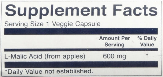 Swanson Malic Acid Capsules - Promotes Cellular Energy Production - Supports Muscle Nourishment and Energy - 100 Veggie Capsules, 600mg