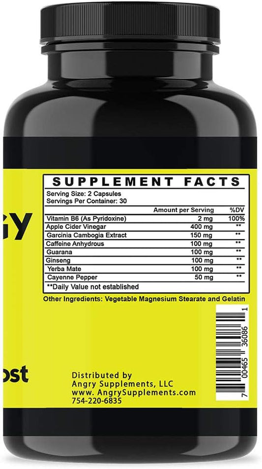 Angry Energy Caffeine Capsules - Natural Non-GMO Energy Booster for Stamina & Focus, Mind & Body Health - 1 Bottle