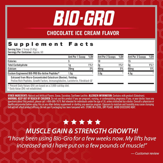 iSatori BIO-GRO Muscle Recovery & Growth Protein Amplifier - Chocolate Ice Cream (60 Servings) - Stimulant-Free Pre-Workout & Colostrum Supplement